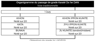 L’examen du 1er Dan voie « traditionnelle » est composé de 6 épreuves notées chacune sur 20.